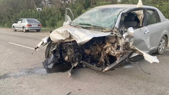 Nissan остался без «морды» в лобовом ДТП на Кубани, есть погибший