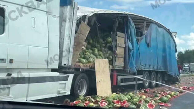 На трассе в Тамбовской области рассыпавшиеся из фуры арбузы заблокировали движение по автотрассе, сообщает Telegram-канал "Москва 24". "Самая ягодная авария случилась на трассе М4. Арбузы "устроили" массовое бегство из кузова грузовика на 90 км в сторону Тамбова", - отмечается в публикации. На кадрах видно, что из-за рассыпавшегося груза и стоящего грузовика автомобили вынуждены двигаться с минимальной скоростью. ДТП произошло на 354-м километре трассы "Каспий", которая ответвляется от М-4 "Дон", уточняет Telegram-канал "Полоса безопасности". По его данным, арбузы рассыпались по проезжей части в результате ДТП. Водитель другого большегруза выехал на встречную полосу и зацепил фуру с арбузами. После этого произошло столкновение с "Газелью" и Lada Largus. Движение в районе места аварии было частично ограничено.