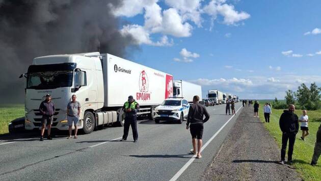 Погибли водители: крупный пожар возник после ДТП с фурами под Омском