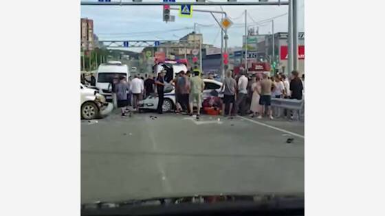 В результате аварии пострадали двое полицейских и женщина. На кадрах видно, как очевидцы вытаскивают сотрудника из смятой машины и переворачивают гражданское авто на колеса. Врачи оказывают пострадавшему помощь.