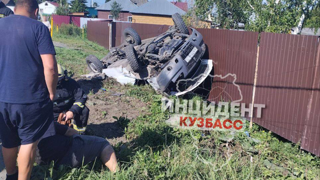 Фургон газовиков перевернулся после тарана столба в Кемерове