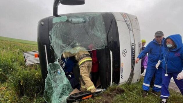 Автобус с 40 пассажирами перевернулся на трассе в Башкирии