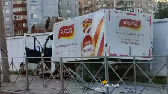 Грузовик протаранил металлическое ограждение около храма в левобережье Новосибирска