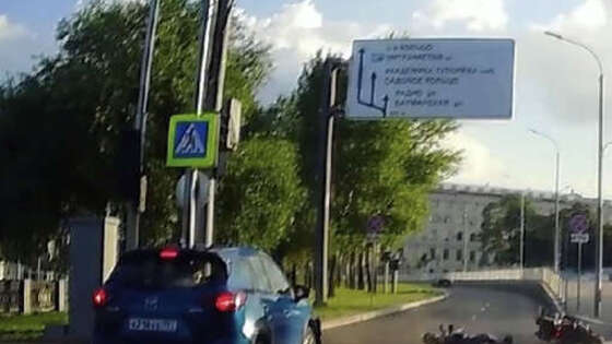 В Москве на видео автомобиль врезался в байкера, пропустившего пешеходов
