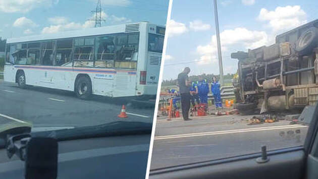 На пересечении трассы А-107 (малое бетонное кольцо, первая "бетонка") и Егорьевского шоссе произошло массовое ДТП, сообщает Telegram-канал "МК: срочные новости" и публикует видеозапись последствий инцидента. "Комбо-ДТП на пересечении Егорьевского шоссе и трассы А-107. Тут вам и фура, и "Газель", и автобус. И пострадавшие, судя по обилию "скорых", тоже есть", - отмечается в публикации. На кадрах видно, что большегрузный автомобиль опрокинулся поперек трассы, перекрыв движение в обоих направлениях. Рядом с ним видна аварийная бортовая "Газель". Далее впереди на проезжей части стоит автобус с символикой МЧС, у которого разбиты боковые стекла. На месте работают спасатели и медики. По данным сервиса Яндекс Карты на 14:30 мск, в районе пересечения Егорьевского шоссе и А-107 на кольцевой трассе наблюдается крупная пробка в обоих направлениях. При движении по часовой стрелке ее длина достигает 2,6 км, против часовой стрелки - 3 км.