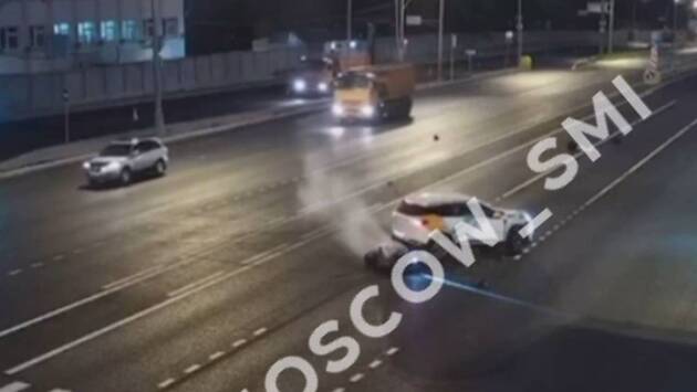 В Москве мотоциклист сделал сальто после жесткого столкновения с легковушкой