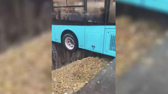 В Казани под троллейбусом произошел крупный провал асфальта и грунта. Об этом сообщает "Рен-ТВ". "Асфальт провалился под троллейбусом в Казани, сообщают местные жители. Инцидент произошел на улице Сахарова", - отмечается в публикации. На кадрах с места происшествия видно, что троллейбус лазурного цвета повис над глубокой ямой. В поверхность асфальта уперлись передняя и задняя часть кузова, вне пределов колесной базы машины. На улице при этом идет сильный дождь. По предварительным данным, в результате инцидента никто не пострадал. в момент обвала грунта в салоне находились пассажиры. Ранее на МКАД самосвал напоролся на бетонные блоки, ограждавшие участок дорожных работ. ДТП попало на видео, водитель смог удержать тяжелый грузовик от опрокидывания.