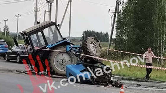 В Челябинской области на видео сняли трактор, разорванный на части после ДТП