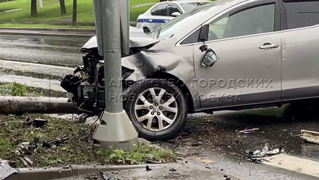 В Москве на видео сняли последствия жесткого столкновения Mazda со столбом