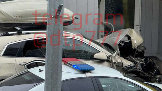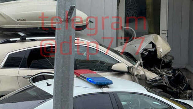 В Москве сфотографировали разбитый Cadillac, влетевший в здание
