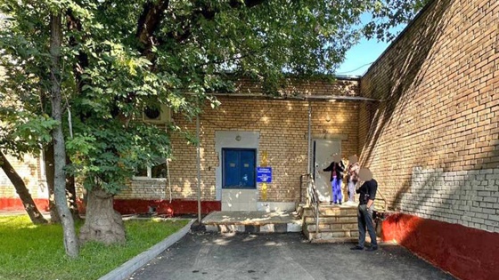 На фотографии виден вход в помещение почты на улице Медиков, а также несколько людей возле.