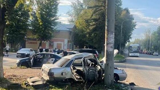 В Самаре водитель, лишенный прав, влетел в бетонный столб, пострадали три человека