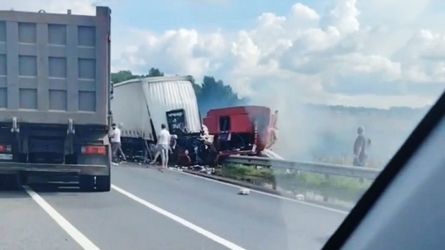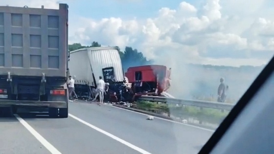 По предварительным данным, погиб один человек. На месте ДТП работают спасатели. Судя по видео, которое снял очевидец, один из большегрузов опрокинулся в кювет, второй — также получил значительные механические повреждения.