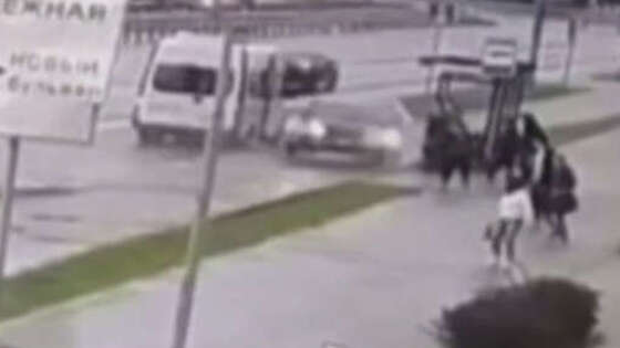 Уличная камера запечатлела инцидент. На кадрах видно, как черный автомобиль едет на большой скорости и боком врезается в остановку, на которой стоят люди. От удара машина подлетает. На записи также заметно, как за несколько секунд до столкновения прохожие успевают отбежать.