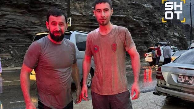 Автомобиль уже начал стремительно уносить в бушующую реку, когда на помощь семье пришли студент Газимагомед Багатаров и его дядя Гаджи Гунашов.