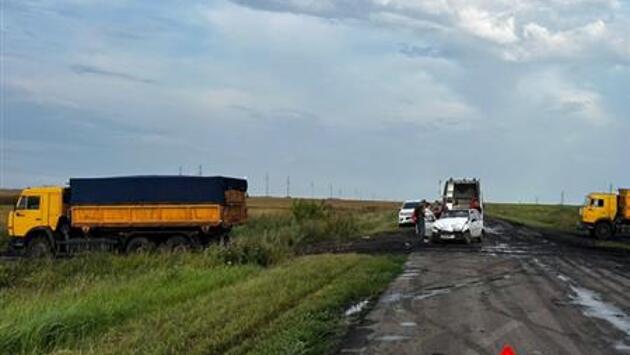 В Кинель-Черкасском районе КамАЗ, пересекавший дорогу в полях, снес "Оку"