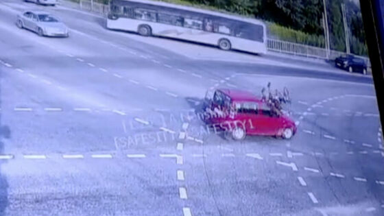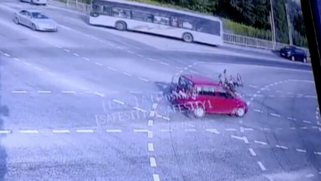 Уличная камера запечатлела инцидент. На кадрах видно, как красный автомобиль сбивает велосипедиста. От удара мужчина отлетает в сторону на несколько метров. На записи также заметно, что в момент ДТП человек находился в защитном шлеме.