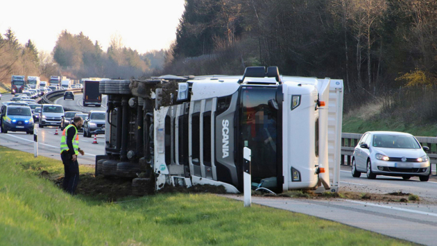 Большегрузный автомобиль перевернулся в пятницу утром на Московской кольцевой автодороге.