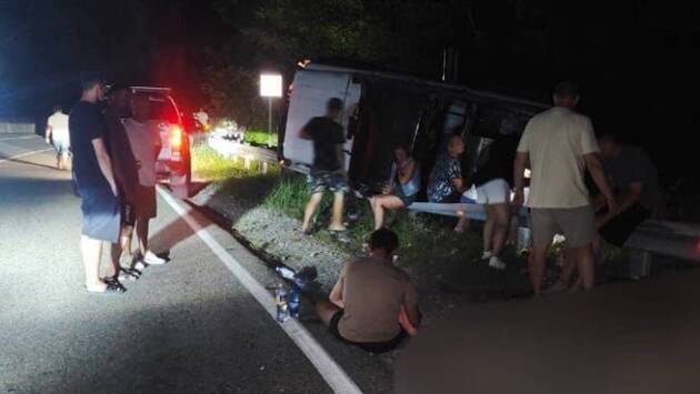 Вечером того же дня в Сочи произошла еще одна подобная авария, но уже с более тяжелыми последствиями. Джип с туристами перевернулся в Лазаревском районе. По словам полицейских, на повороте водитель не справился с управлением и съехал с трассы, в результате чего автомобиль опрокинулся на дорожное ограждение.