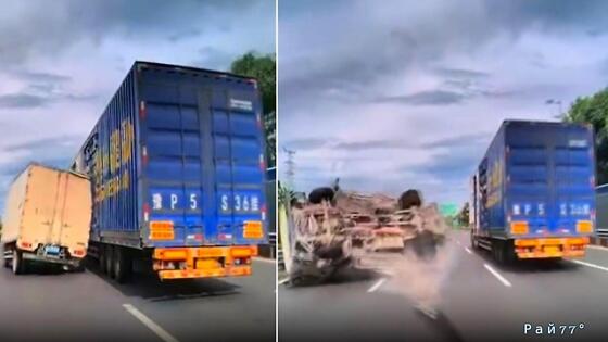 Небольшой грузовик проиграл в противостоянии с большегрузом в Китае