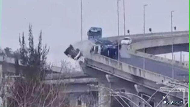 Водитель автовоза не справился с управлением на эстакаде в городе Порту-Алегри (штат Риу-Гранди-ду-Сул, Бразилия), в результате чего один из легковых автомобилей упал вниз.