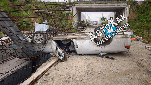 В Новокузнецке автомобиль запутался в металлических прутьях и перевернулся. В результате ДТП есть пострадавшие.