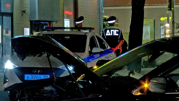 В Москве разыскивают водителя, который накануне вечером устроил аварию на улице Шаболовка. Автомобиль Лексус с дипломатическими номерами Вьетнама, по предварительным данным, проскочил на красный. И врезался в столб.