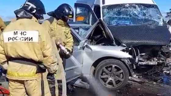 Трое человек в крайне тяжелом состоянии после лобового столкновения иномарки с маршруткой