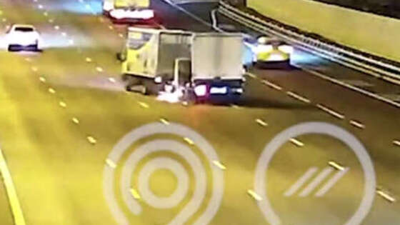 На МКАД на видео попало, как грузовик заискрился в момент ДТП