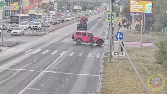 Момент столкновения мопеда и джипа в Волгограде попал на видео