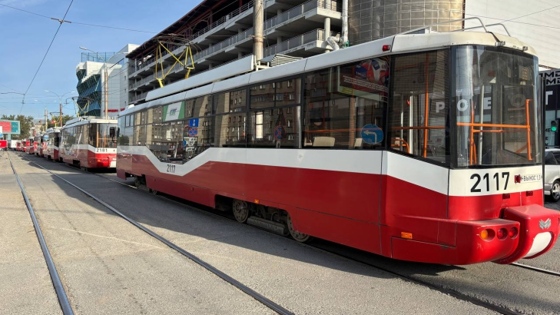 Трамваи № 15 и № 18 встали на площади Маркса из-за аварии. Пассажиры вынуждены добираться до работы на автобусах и маршрутках.