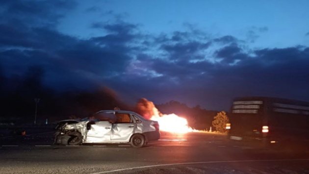 Через 40 минут после вызова на место ДТП прибыла первая карета скорой помощи, затем пожарные. К тому моменту "Приора" полностью сгорела.