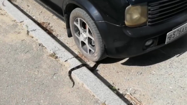 Во Владивостоке на видео попало, как полоз забрался в кузов машины