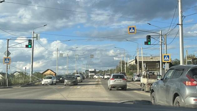По его словам, перекрыта полоса из-за чего затруднено движение, водителям приходится объезжать по встречке.