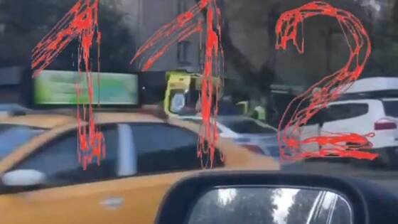 На кадрах видно въехавший в павильон автомобиль экстренной службы. Характер повреждений транспортного средства рассмотреть невозможно. Рядом стоит каталка, укрытая желтой тканью, силуэт под которой напоминает человеческий. Также запечатлены сотрудники экстренных служб.