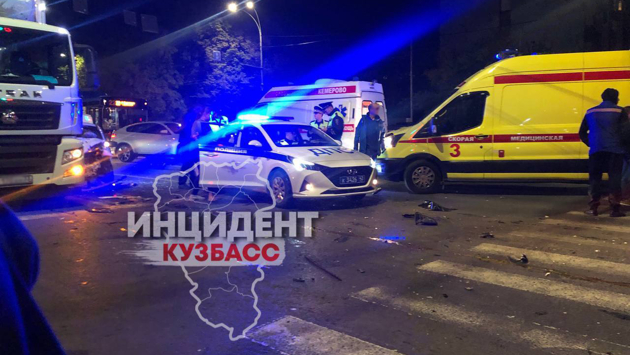 Накануне вечером в кузбасской столице машина влетела на огромной скорости в легковушку и фуру, что привело к серьезным последствиям.
