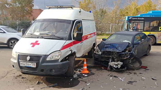 Водители двух машин, один пассажир и двое медработников получили травмы при столкновении автомобиля скорой медицинской помощи с легковой иномаркой в Иркутской области.