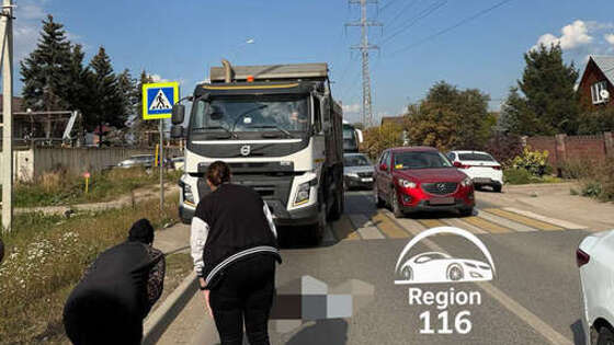 Очевидцы запечатлели последствия инцидента. На кадрах видно, что пострадавшая женщина лежит на проезжей части перед большегрузом. О состоянии ребенка ничего не сообщается.