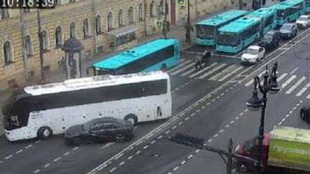В Петербурге сняли караван лазурных автобусов, которые застряли из-за ДТП