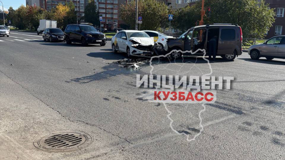 В пятницу, 19 сентября, около 12:00 в Кемерове на проспекте Молодежном недалеко от "Гринвича" столкнулись лоб в лоб две легковушки.