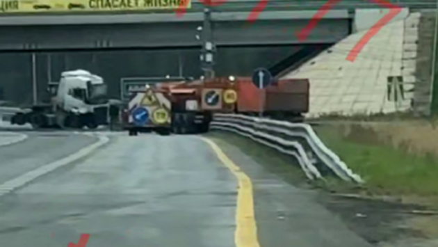 На шоссе под Чеховом образовалась гигантская пробка из-за столкновения грузовиков