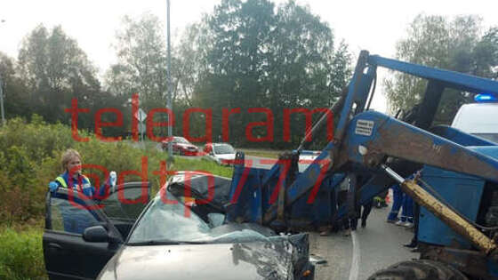 Под Воскресенском трактор с навесными вилами раздавил автомобиль Kia Spectra с водителем. Об этом сообщает Telegram-канал "Воскресенск Онлайн" и публикует видеозапись инцидента. ДТП произошло в поселке Виноградово Воскресенского района. На кадрах видно, что трактор с прицепом и укрепленными в передней части вилами с гидроприводом поворачивал налево и врезался во встречный автомобиль Kia Spectra. От удара легковой автомобиль оказался распорот вилами в районе места водителя, навесное оборудование трактора смяло крышу и дверь Kia Spectra, разбило лобовое стекло. На место происшествия прибыли спасатели, которые извлекли пострадавшего водителя из искореженного автомобиля. Выжить мужчине не удалось. До этого на видео попал пешеход, который пытался перебежать МКАД, и попал под автомобиль.