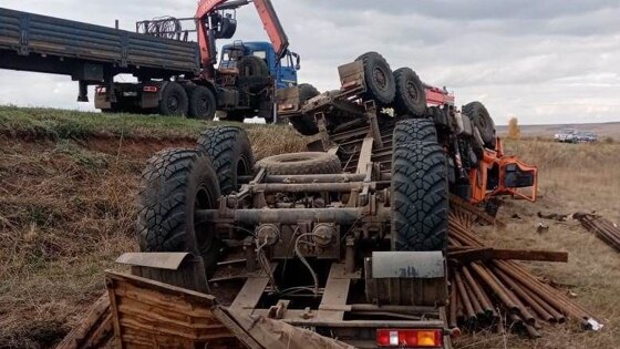 По данным ведомства, водитель большегруза, перевозившего металлические трубы, не справился с управлением. В результате автомобиль съехал в кювет и опрокинулся.