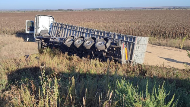 В Самарской области 23 сентября фура с зерном оказалась в кювете