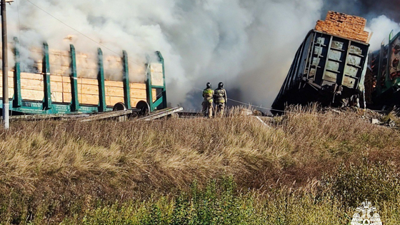 – Пожарные тушат шесть вагонов с горючими материалами. В ликвидации задействованы более 40 специалистов и 10 единиц техники. На место выдвинулись пожарный и восстановительный поезда, – сообщили в ведомстве.