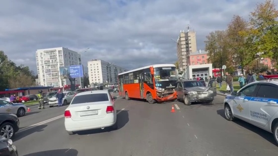 Авария произошла на проспекте Ленина. По предварительной информации, автобус из-за технической неисправности въехал в автомобиль, после чего по инерции были повреждены еще шесть машин.