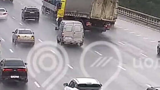 На МКАД на видео попало, как цемент разлетелся по оживленной дороге