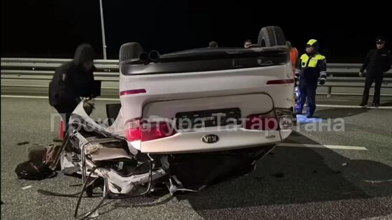 От удара легковой автомобиль отбросило на разделительное ограждение, после чего он несколько раз перевернулся.