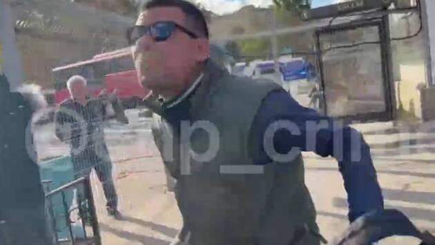 Водитель автобуса Симферополь-Севастополь оплевал пассажирок после ссоры. Действия россиянина попали на видео, ролик опубликовал Telegram-канал «ЧП Крым».