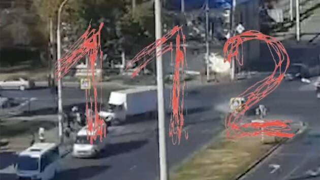 На представленных кадрах видно, как фура резко сворачивает на тротуар. Несколько горожан от удара падают на асфальт. Как утверждает «112», одного из пешеходов госпитализировали. Предположительно, автомобиль Lada при повороте не уступил дорогу грузовику.